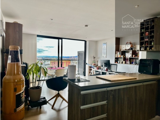 Sala-comedor, dos habitaciones con Vestier y baño privado respectivamente, cocina tipo americano, zona de lavandería,1 deposito, 1 garaje.